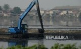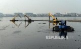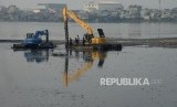REPUBLIKA.CO.ID, JAKARTA -- Sejumlah alat berat saat melakukan pengerukan di Waduk Pluit, Jakarta, Selasa (11/6).