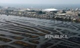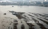 Musim kemarau menyebabkan permukaan air Waduk Pluit menyusut yang mengakibatkan munculnya endapan lumpur yang membentuk pulau kecil dengan tumpukan sampah.