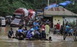 REPUBLIKA.CO.ID, KONAWE -- Sebuah mobil berusaha melintasi banjir luapan Sungai Pohara di Desa Andadowi, Konawe, Sulawesi Tenggara, Selasa (11/6/2019).