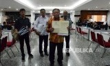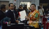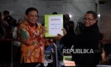 REPUBLIKA.CO.ID, JAKARTA -- Ketua Bawaslu Abhan menyerahkan berkas keterangan tertulis Bawaslu dalam Perselisihan Hasil Pemilihan Umum (PHPU) Pemilihan Presiden 2019, di Mahkamah Konstitusi (MK), Jakarta, Rabu (12/6/2019).