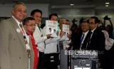 Ketua Tim Hukum TKN Yusril Ihza Mahendra bersama Direktur Hukum dan Advokasi TKN Ade Irfan Pulungan memperlihatkan tanda terima berkas keterangan dan alat bukti jawaban terkait sengketa Pemilihan Presiden 2019 di Mahkamah Konstitusi, Jakarta, Kamis (13/6). (FOTO : Republika/Putra M. Akbar)