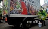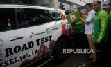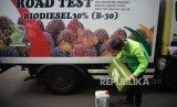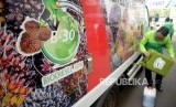 Petugas mengisi bahan bakar B-30 ke kendaraan saat peluncuran uji jalan Penggunaan Bahan Bakar B30 untuk kendaraan bermesin diesel di Kementerian ESDM, Jakarta, Kamis (13/6). (FOTO : Republika/Prayogi)