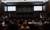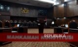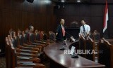 REPUBLIKA.CO.ID, JAKARTA -- Suasana ruang sidang yang akan digunakan pada sidang perdana sengketa Pemilhan Presiden (Pilpres) 2019 di Mahkamah Konstitusi, Jakarta, Kamis (13/6).