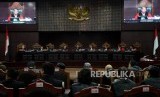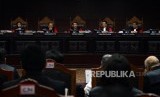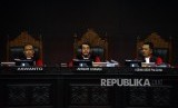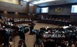 Suasana sidang perdana Perselisihan Hasil Pemilihan Umum (PHPU) Pemilihan Presiden (Pilpres) 2019 di Gedung Mahkamah Konstitusi, Jakarta, Jumat (14/6). (FOTO : Republika/Putra M. Akbar)