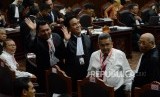 Tim Kuasa Hukum Calon Presiden dan Calon Wakil Presiden nomor urut 01 Yusril Ihza Mahendra saat mengikuti sidang perdana Perselisihan Hasil Pemilihan Umum (PHPU) Pemilihan Presiden (Pilpres) 2019 di Gedung Mahkamah Konstitusi, Jakarta, Jumat (14/6). (FOTO : Republika/Putra M. Akbar)