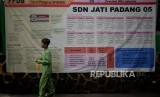 Seorang anak melintas didekat pengumuman Penerimaan Peserta Didik Baru (PPDB) online tahun pelajaran 2019/2020 yang dipajang di SDN Jati Padang 05, Jakarta, Jumat (14/6). (FOTO : Republika/Prayogi)