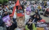 REPUBLIKA.CO.ID, JAKARTA -- Aksi Aksi di Sekitar Gedung MK. Sejumlah Massa aksi membentangkan poster di Jalan Merdeka Barat, Jakarta Pusat, Jum’at (14/6).