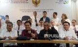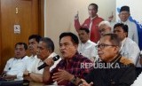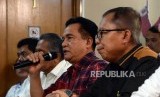 REPUBLIKA.CO.ID, JAKARTA -- Ketua Tim Kuasa Hukum Calon Presiden dan Wakil Presiden Nomor Urut 01 Joko Widodo-Ma'ruf Amin, Yusril Ihza Mahendra bersama Wakil Ketua TKN Asrul Sani dan Direktur Hukum dan Advokasi TKN Ade Irfan Pulungan memberikan keterangan saat konferensi pers di Jakarta, Senin (17/6).