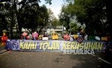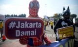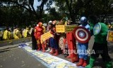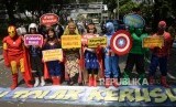 REPUBLIKA.CO.ID, JAKARTA -- Sejumlah massa yang mengenakan kostum karakter tokoh superhero yang berasal dari komunitas pencinta superhero Indonesia melakukan aksi unjuk rasa di Jalan Medan Merdeka Barat, Jakarta, Selasa (18/6).