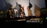 Gelar Festival Dalang Cilik. Dalang cilik beraksi saat Festival Dalang Cilik di UNY, Yogyakarta, Rabu (19/6/2019). (FOTO : Republika/ Wihdan)