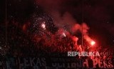REPUBLIKA.CO.ID, SURABAYA -- Suporter Persebaya menyalakan suar dan kembang api saat pertandingan babak delapan besar Piala Indonesia melawan Madura United di Stadion Gelora Bung Tomo, Surabaya, Jawa Timur, Rabu (19/6/2019).