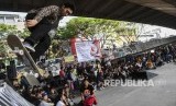 REPUBLIKA.CO.ID, BANDUNG -- Pecinta Skateboard melakukan aksi di Skate Park Pasupati, Bandung, Jawa Barat, Jumat (21/6/2019).