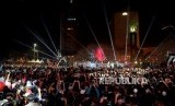 REPUBLIKA.CO.ID, JAKARTA -- Ribuan warga memadati Bundaran Hotel Indonesia pada perayaan Malam Puncak HUT ke-492 DKI Jakarta, Sabtu (22/6). Panggung pertujukan, lampu sorot warna-warni dan 'video mapping' yang diarahkan ke gedung-gedunug bertingkat di sekeliling bundaran menambah kemeriahan peringatan.