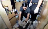REPUBLIKA.CO.ID, JAKARTA -- Petugas kepolisian memeriksa tempat produksi pabrik Sabu di Kalideres, Jakarta Barat, Senin (24/6).