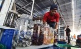 Relokasi Pasar Ikan Hias Jatinegara.Pedagang membersihkan wadah penampungan ikan di bursa pasar hewan kawasan Jatinegara, Jakarta Pusat, Senin (24/6). (FOTO : Fakhri Hermansyah)