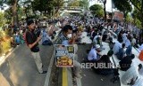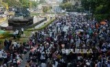 Sejumlah massa saat Aksi Tahlil Akbar 266 di Jalan Medan Merdeka Barat, Jakarta, Rabu (26/6). (FOTO : Republika/Putra M. Akbar)