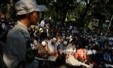 REPUBLIKA.CO.ID, JAKARTA -- Sejumlah massa saat menggelar doa bersama pada Aksi Tahlil Akbar 266 di Jalan Medan Merdeka Barat, Jakarta, Rabu (26/6).