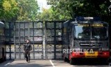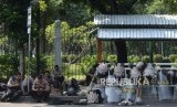 REPUBLIKA.CO.ID, JAKARTA -- Personel kepolisian berada disekitar lokasi Gedung Mahkamah Konstitusi (MK), Jakarta, Kamis (27/6).