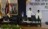 Penetapan Presiden dan Wakil Presdien Terpilih. Presiden dan Wakil Presiden terpilih Periode 2019-2024, Joko Widodo dan KH Ma'ruf Amin bergegas untuk menerima surat keputusan di Gedung KPU, Jakarta, Ahad (30/6). (FOTO : Republika/Putra M. Akbar)