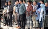 REPUBLIKA.CO.ID, JAKARTA -- Sejumlah pegawai yang tergabung dalam Wadah Pegawai KPK memberikan keterangan terkait seleksi pimpinan KPK, di Gedung KPK, Jakarta, Senin (1/7).