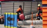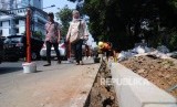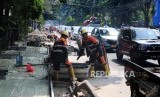 REPUBLIKA.CO.ID, JAKARTA -- Sejumlah petugas Dinas Bina Marga DKI Jakarta melakukan pengerjaan revitalisasi trotoar di Jalan Cikini, Jakarta Pusat, Senin (1/7).