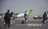 REPUBLIKA.CO.ID, BANDUNG -- Sejumlah penumpang berjalan menuju pesawat di Bandara Husein Sastranegara, Kota Bandung, Senin (1/7).