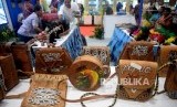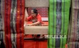 Pengrajin membuat produk tenun pada pameran APKASI Otonomi Expo (AOE) 2019 di Jakarta Convention Center, Jakarta, Rabu (3/7). (FOTO : Republika/Prayogi)
