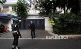 REPUBLIKA.CO.ID, JAKARTA -- Sejumlah petugas paspampres (Pasukan Pengamanan Presiden) melakukan pengamanan di rumah Wakil Presiden terpilih 2019-2024 Ma'ruf Amin di Jalan Situbundo, Menteng, Jakarta Pusat, Jum'at (5/7).