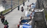 REPUBLIKA.CO.ID, JAKARTA -- Warga beraktivitas di gubuk yang berdiri di jalur inspeksi bantaran kanal banjir barat, kawasan Tanah Abang, Jakarta, Jumat (5/7/2019).