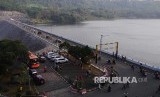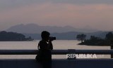 Pengunjung memotret salah satu sudut Waduk Cirata di Pembangkit Listrik Tenaga Air Cirata, Kabupaten Purwakarta, Sabtu (6/7). (FOTO : Yogi Ardhi/Republika)