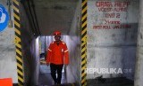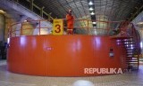 Petugas Power House Unit Pembangkit Cirata di salah satu Turbin Shaft di Pusat Listrik Tenaga Air Cirata, Kabupaten Purwakarta, Sabtu (6/7). (FOTO : Yogi Ardhi/Republika)