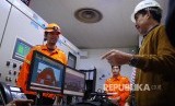 Petugas memeriksa turbin Unit Pembangkit Cirata di salah satu di Pusat Listrik Tenaga Air Cirata, Kabupaten Purwakarta, Sabtu (6/7). (FOTO : Yogi Ardhi/Republika)