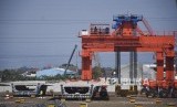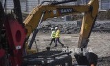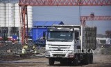 REPUBLIKA.CO.ID, BANDUNG -- Pekerjaberaktivitas di area pabri kpembuatan girder kereta cepat di Kopo, Kota Bandung, Senin (8/7).