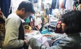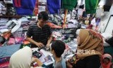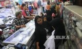 REPUBLIKA.CO.ID, JAKARTA -- Sejumlah warga berbelanja kebutuhan seragam sekolah anak untuk mereka di Pasar Perumnas, Jakarta Timur Senin (8/7).