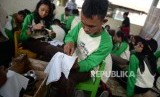 REPUBLIKA.CO.ID, YOGYAKARTA -- Anggota Pramuka berlatih membatik di Kampung Budaya Dipowinatan, Yogyakarta, Kamis (11/7/2019).