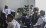 Terpidana kasus kepemilikan narkoba, Muhammad Ridho atau Ridho Rhoma (kedua kiri) bersama Ayahnya Rhoma Irama (kiri) melakukan pertemuan dengan pihak Kejaksaan Tinggi Jakarta Barat, Jumat (12/7/2019) (FOTO : Antara/Muhammad Adimaja)