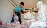 Petugas menyiapkan daging sapi dan ayam pada truk pendingin yang dijual di Ruang Publik Terbuka Ramah Anak (RPTRA) Taman Keuangan, Bendungan Hilir, Tanah Abang, Jakarta, Jumat (12/7/2019). (FOTO : Antara/M Risyal Hidayat)