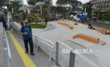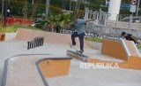 Pemain skateboard saat bermain skate di Taman Spot Budaya, Dukuh Atas, Jakarta, Selasa (16/7). (FOTO : Republika/Putra M. Akbar)