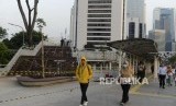 Warga melintas di Taman Spot Budaya, Dukuh Atas, Jakarta, Selasa (16/7). (FOTO : Republika/Putra M. Akbar)