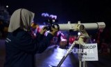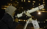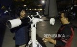 REPUBLIKA.CO.ID, JAKARTA -- Petugas mempersiapkan teleskop yang akan digunakan untuk mengamati gerhana bulan parsial di Taman Ismail Marzuki, Jakarta, Selasa (16/7).