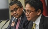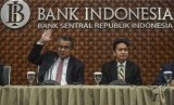 Gubernur Bank Indonesia (BI) Perry Warjiyo (kiri) bersama Senior Deputi BI Mirza Adityaswara (kanan) mengumumkan hasil Rapat Dewan Gubernur (RDG) BI dihadapan wartawan di gedung BI, Jakarta, Kamis (18/7/2019). (FOTO : Antara/Muhammad Adimadja)