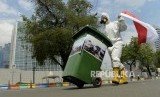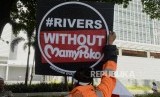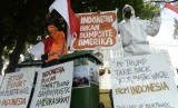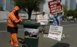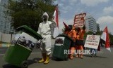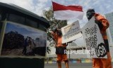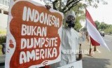 REPUBLIKA.CO.ID, JAKARTA -- Demonstran saat melakukan aksi terkait penyelundupan sampah di Depan Kedutaan Besar Amerika Serikat, Jakarta, Jumat (19/7).