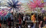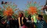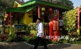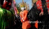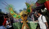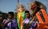 REPUBLIKA.CO.ID, JAKARTA -- Ondel-ondel dan pemain musik tanjidor menghibur pengunjung yang memadati acara Lebaran Betawi 2019 di lapangan silang Monumen Nasional (Monas), Jakarta, Ahad (21/7).