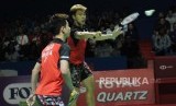 Pasangan Marcus/Kevin menundukkan Hendra/Ahsan dengan skor 21-19, 21-16..