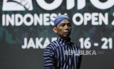Hakim garis mengenakan kemeja lurik dan belangkon saat bertugas di pertandingan babak final Blibli Indonesia Open 2019 di Istora Senayan, Jakarta, Ahad (21/7). (FOTO : Republika/Edwin Dwi Putranto)