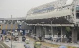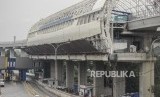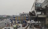 REPUBLIKA.CO.ID, JAKARTA -- Pekerja menyelesaikan pembangunan Stasiun LRT Jabodebek di Kawasan Kampung Rambutan, Jakarta, Senin (22/7).