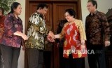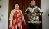 REPUBLIKA.CO.ID, JAKARTA -- Ketua Umum PDI Perjuangan Megawati Soekarnoputri bersama Ketua Umum Partai Gerindra Prabowo Subianto melakukan pertemuan di kediaman Jalan Teuku Umar, Jakarta, Rabu (24/7).