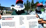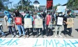 Bertepatan dengan Hari Lingkungan Hidup Sedunia, massa dari Aliansi Aksi Koalisi Udara Bersih melakukan unjuk rasa di depan Gedung Sate, Kota Bandung, Kamis (25/7). (FOTO : Republika/Edi Yusuf)