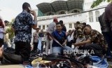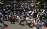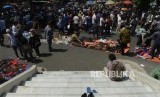 REPUBLIKA.CO.ID, JAKARTA -- Sejumlah pedagang menggelar barang daganganya usai Shalat Jumat di halaman Masjid Cut Meutia, Jakarta, Jumat (26/7).