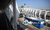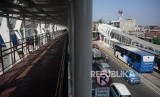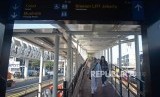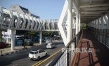 REPUBLIKA.CO.ID, JAKARTA -- Suasana jembatan penghubung Stasiun LRT Jakarta Velodrome-Halte Transjakarta Pemuda di kawasan Rawamangun, Jakarta, Jumat (26/7).